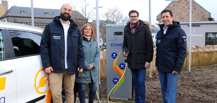 Am Dienstag, den 20. Januar 2026 haben Bürgermeister Carsten Sinß und Bauamtsleiterin Lisa Niegel zusammen mit Jan Lenzen und Erik Dahlhäuser von der ESWE Versorgungs AG eine neue E-Ladesäule an der Brentanoscheune in Betrieb genommen. Es handelt sich dabei um eine sogenannte „Normal-Ladesäule“, die auf dem Parkplatz vor dem Gebäude steht.