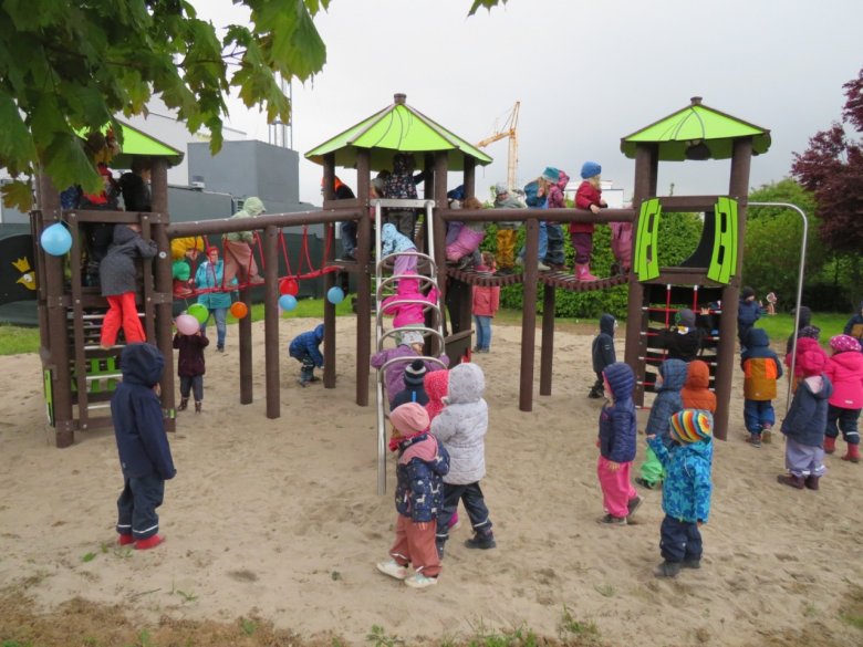 Die Kita-Kinder lieben das neue Spielgerät im Außengelände der Kita „Purzelbaum“ in Winkel.