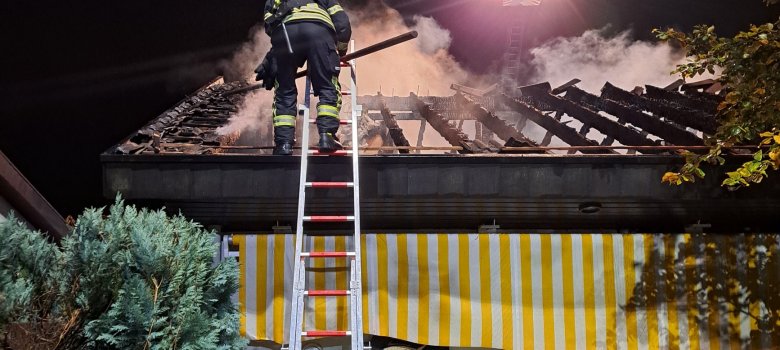 Oestrich-Winkel – Am Samstag, den 19.10.2024 wurden um 21:32 Uhr die Feuerwehren Hallgarten, Oestrich sowie der Einsatzleitwagen zu einem Gebäudebrand mit Menschenleben in Gefahr zur Siedlung Rebhang alarmiert. Noch auf der Anfahrt zur Einsatzstelle wurden die Einsatzkräfte durch die Zentrale Leitstelle des Rheingau-Taunus Kreises (RTK) darüber informiert, dass keine Personen mehr im Gebäude waren. Beim Eintreffen, nur sechs Minuten nach der Alarmierung, stand fast der gesamte Dachstuhl in Vollbrand. Umgehend wurden mehrere C-Rohre sowie zwei Drehleitern zur Brandbekämpfung eingesetzt. Nachdem der Brand unter Kontrolle war, wurden umfangreiche Nachlöscharbeiten durchgeführt. Diese gestalteten sich aufgrund der Einsturzgefahr des Dachstuhles sowie der verbauten Wärmeschutzdämmung äußerst schwierig. Aus diesem Grund wurden die Feuerwehren Mittelheim und Winkel mit weiteren Atemschutzgeräteträgern nach alarmiert. Die Nachlöscharbeiten konnten erst um 04:00 Uhr beendet werden.