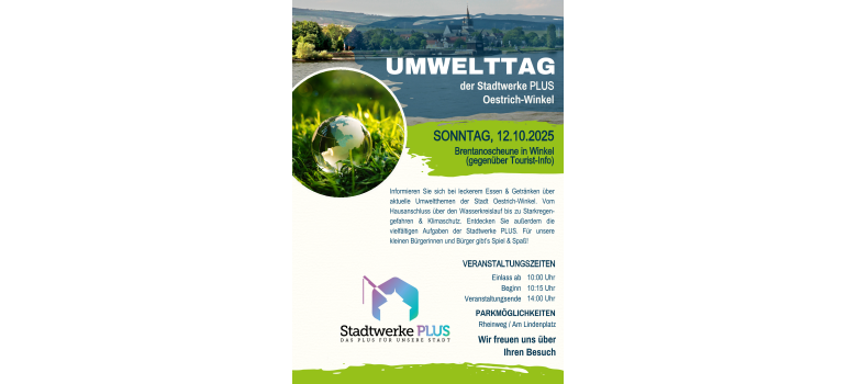 Bürgermeister Carsten Sinß und der Erste Stadtrat Björn Sommer laden alle Oestrich-Winkeler Bürgerinnen und Bürger herzlich dazu ein: „Kommen Sie vorbei und informieren Sie sich über die aktuellen Umweltthemen der Stadt Oestrich-Winkel. Es gibt viele wertvolle Informationen rund um den Wasserkreislauf, den Hausanschluss, Klimaschutz sowie die Gefahren, die von Starkregen ausgehen können. Entdecken Sie die vielfältigen Aufgabenbereiche der Stadtwerke Plus.“