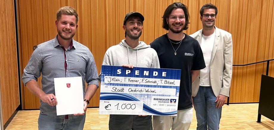 Am 9. Juli wurden im neuen Hörsaalgebäude der Hochschule Geisenheim die überzeugendsten Projektentwicklungen des nicht öffentlichen Wettbewerbs ausgezeichnet. Oestrich-Winkels Bürgermeister Carsten Sinß überreichte persönlich die Preise an die engagierten Studierenden. Insgesamt wurden für sieben Machbarkeitsanalysen sowie die drei Stegreifentwürfe Preisgelder in Höhe von 3.000 Euro vergeben, gestiftet von der Stadt und dem Alumniverband.