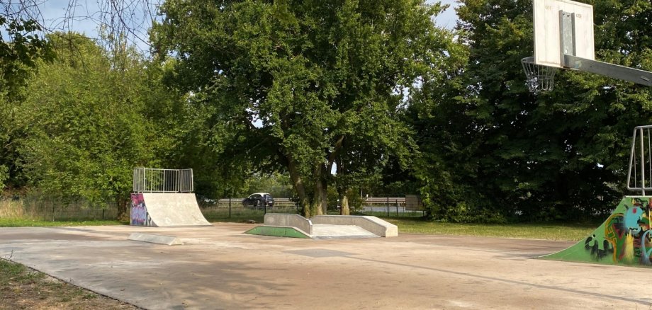Auf dem Skaterplatz in Oestrich wird natürlich geskatet, es gibt aber auch die Möglichkeit, Basketball oder Tischtennis zu spielen.