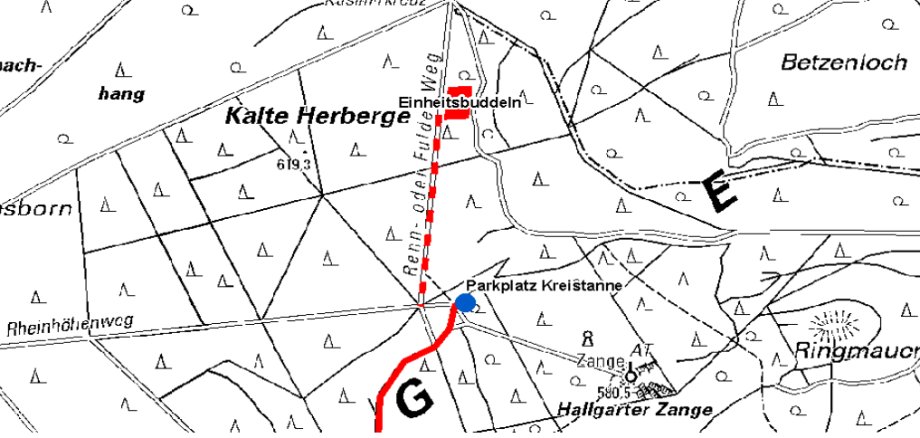 Die Anfahrt erfolgt über den PKW-tauglichen Waldweg von der Siedlung Rebhang bis zum Parkplatz Kreistanne, von dort geht es zu Fuß wenige hundert Meter bis zur diesjährigen Einheitsbuddelfläche. Der Weg zur Pflanzstelle ist ausgeschildert.