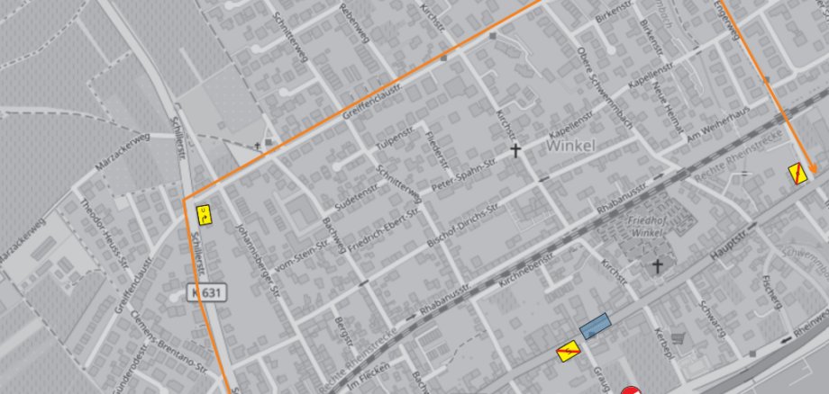 Alle Verkehrsteilnehmer in Oestrich-Winkel werden gebeten, den betroffenen Bereich nach Möglichkeit über die Bundesstraße 42 weiträumig zu umfahren. Sollte die weiträumige Umfahrung nicht möglich sein, bittet die Stadt Oestrich-Winkel der Umleitungsbeschilderung zu folgen und bedankt sich für das Verständnis.