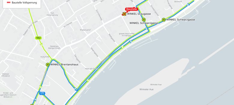 Die Busse der Linie 171 in Fahrtrichtung Wiesbaden werden über die Goethestraße und die Bundesstraße 42 umgeleitet.