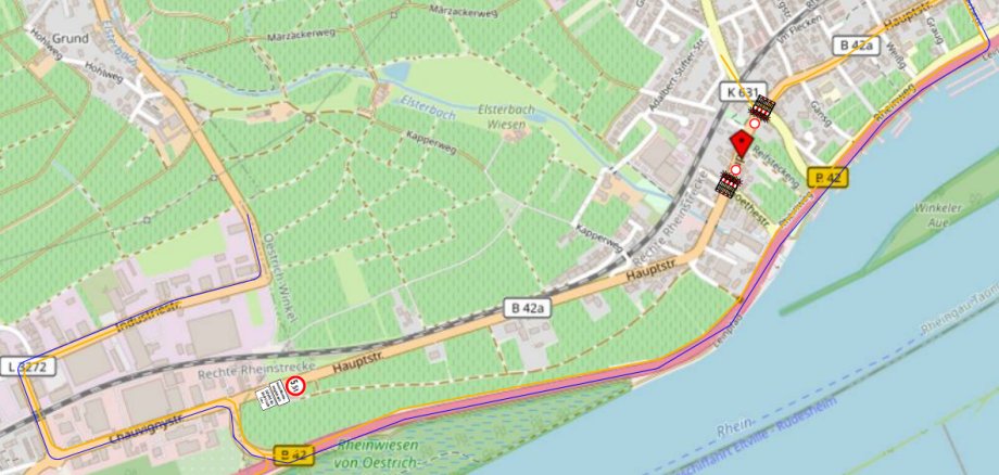 Der motorisierte Verkehr wird zwischen Geisenheim / Chauvignystraße und Oestrich-Winkel / Kerbeplatz über die Bundesstraße 42 umgeleitet. Die Anwohner im betroffenen Bereich der Hauptstraße werden von Seiten des beauftragten Bauunternehmens per Briefkasten-Einwurf über die Baumaßnahme informiert. Die Zufahrt mit dem PKW zu den Privatgrundstücken bleibt möglich. Auch Fußgänger können den Baustellenbereich durchqueren.