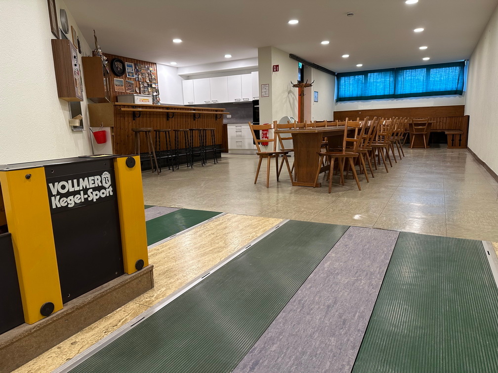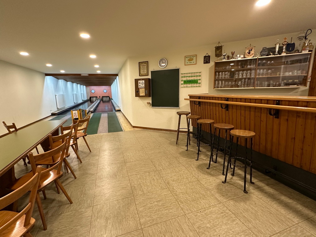 In der Kegelbahn, die seit dem Jahr 1974 in Betrieb ist, befindet sich eine Theke und eine