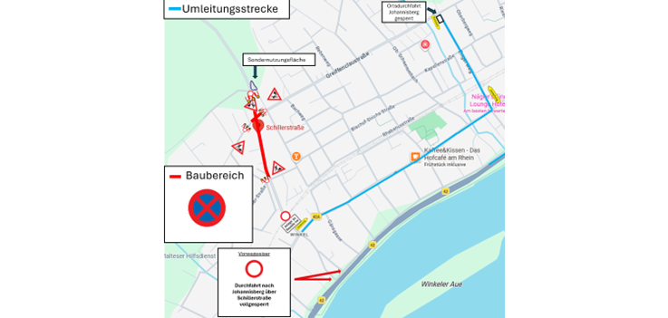 Alle Parkflächen auf der Fahrbahn entlang der Schillerstraße entfallen für die Dauer der Bauarbeiten.